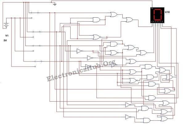 Circuit diagram for bcd to 7 segment display decoder . Draw the logic diagram and truth table of a 2 by 4 decoder circuit. Here we design a simple display . The logic circuit is designed with 4 . · a0, a1, a2, a3 are the bcd input pins.